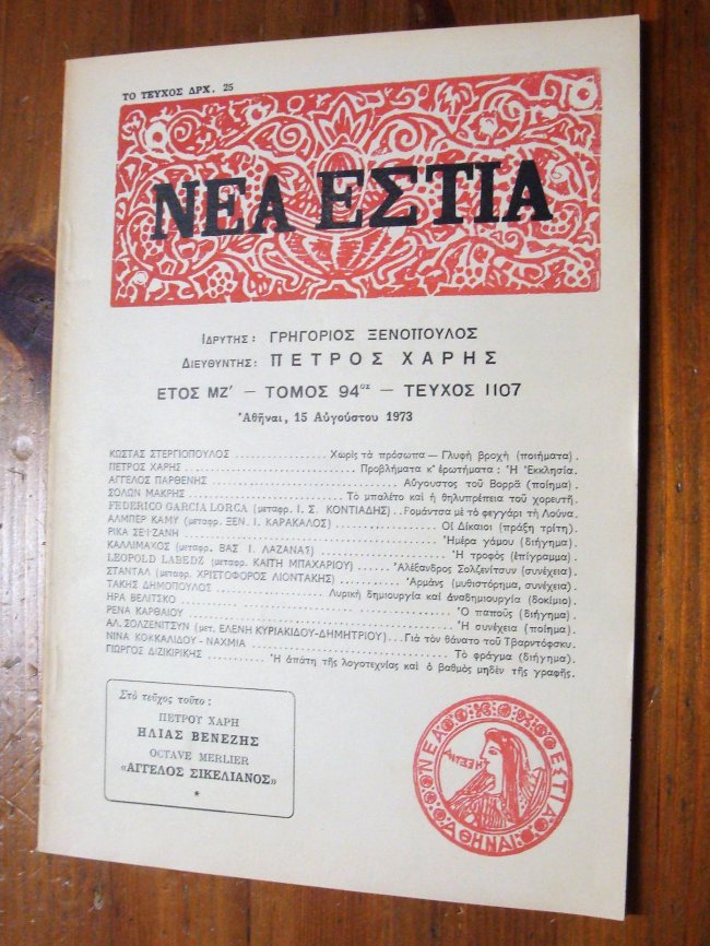 ΝΕΑ ΕΣΤΙΑ(ΤΕΥΧΟΣ 1107,15 ΑΥΓΟΥΣΤΟΥ 1973)