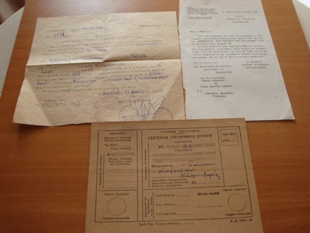 ΚΑΡΤΑ ΤΑΧΥΔΡΟΜΙΚΗΣ ΕΠΙΤΑΓΗΣ ΕΛΛΗΝΙΚΩΝ ΤΑΧΥΔΡΟΜΕΙΩΝ(1960)&ΕΓΓΡΑΦΟ ΤΟΥ ΑΡΧΗΓΕΙΟΥ ΧΩΡΟΦΥΛΑΚΗΣ(24 ΑΠΡΙΛΙΟΥ 1973) & ΦΥΛΛΟΝ ΑΤΟΜΙΚΗΣ ΠΡΟΣΚΛΗΣΕΩΣ ΠΟΛΙΤΙΚΗΣ ΕΠΙΣΤΡΑΤΕΥΣΕΩΣ(31 ΜΑΪΟΥ 1963)