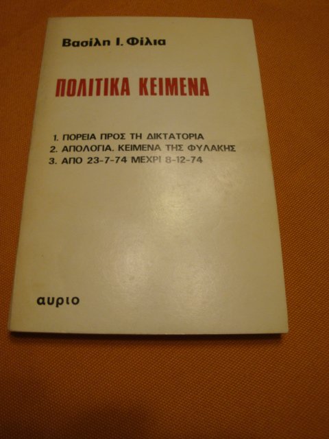 ΣΕΛ.165(14Χ20,5) Σ Υ Γ Γ Ρ Α Φ Ε Α Σ:Ο Βασίλης Φίλιας γεννήθηκε στην Αθήνα στις 22 Οκτωβρίου 1927. Διπλωματούχος Νομικής Σχολής Πανεπιστημίου Αθηνών, διπλωματούχος Θεωρητικών Οικονομικών Πανεπιστημίου Μονάχου, Διδάκτωρ Κοινωνιολογίας Πανεπιστημίου Αμβούργου, διετέλεσε επί σειρά ετών καθηγητής κοινωνιολογίας Παντείου, Πρόεδρος του τμήματος Κοινωνιολογίας και Πρύτανης ΠΑΣΠΕ. Ακόμη, υπήρξε Διευθυντής του Εθνικού Κέντρου Κοινωνικών Ερευνών, Πρόεδρος του Εφορευτικού Συμβουλίου της Εθνικής Βιβλιοθήκης της Ελλάδος και Πρόεδρος του ΔΣ της ολυμπιακής αεροπορίας. Ήταν συνεκδότης των περιοδικών 'Νέα Οικονομία', 'Κοινωνία και Οικονομία' και 'Ο Σοσιαλισμός του Μέλλοντος'. Κατά τη δικτατορία του 1967 συνίδρυσε την αντιστασιακή οργάνωση 'Δημοκρατική ΄ Αμυνα' - φυλακίστηκε επί 5,5 έτη. Από το 1974 έως το 1990 δημοσίευσε πλήθος άρθρων στις εφημερίδες 'Ελευθεροτυπία', 'Πρώτη' και 'Έθνος'.